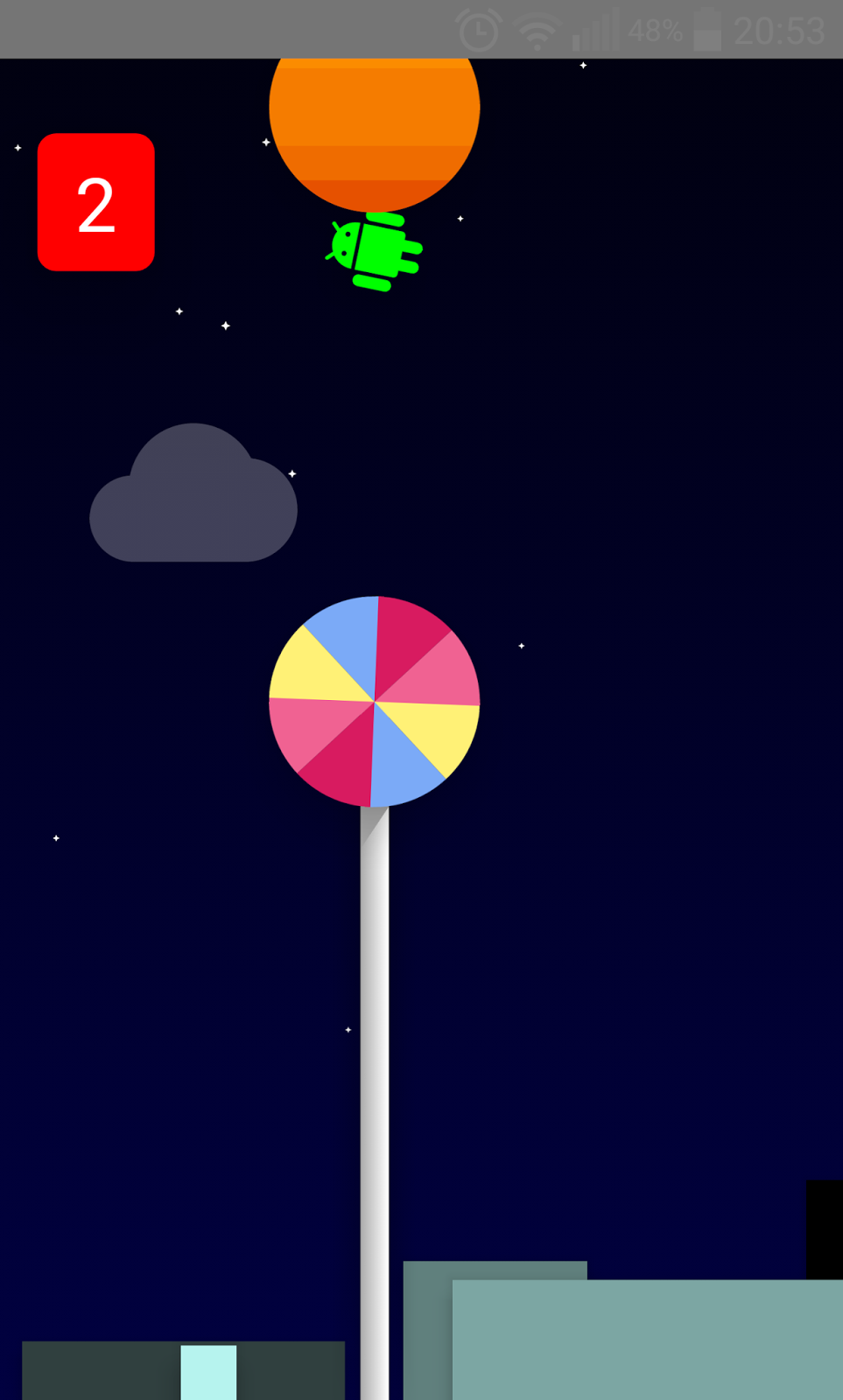 7.- Un a vez dentro del juego, tendremos que pulsar la pantalla para hacer que nuestro pequeño androide salte y esquive las piruletas.
