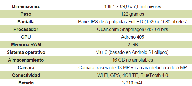 Como viene siendo habitual, Xiaomi implementa la capa Miui en sus terminales. En esta ocasión tenemos Miui 6, basado en Android 5 Lollipop de serie. El Mi4i incorpora 8 núcleos con arquitectura de 64 bits, lo que nos permite asegurar que aprovechará mejor los recursos del terminal. Procesador Qualcomm Snapdragon 615, con 2 GB de memoria RAM y 16 GB de almacenamiento interno, no ampliables, completa el equipamiento del terminal. Como vemos, especificaciones de gama media-alta.